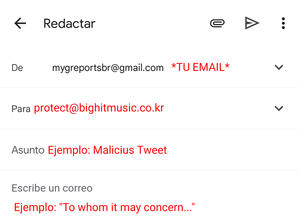 Cuando exista la necesidad de enviar una plantilla, publicaremos un documento disponible en Drive incluyendo el destinatario, título del asunto abordado y la queja. El proceso es simple y claro, simplemente copie y pegue todo en sus respectivos lugares ya dichos en el documento.